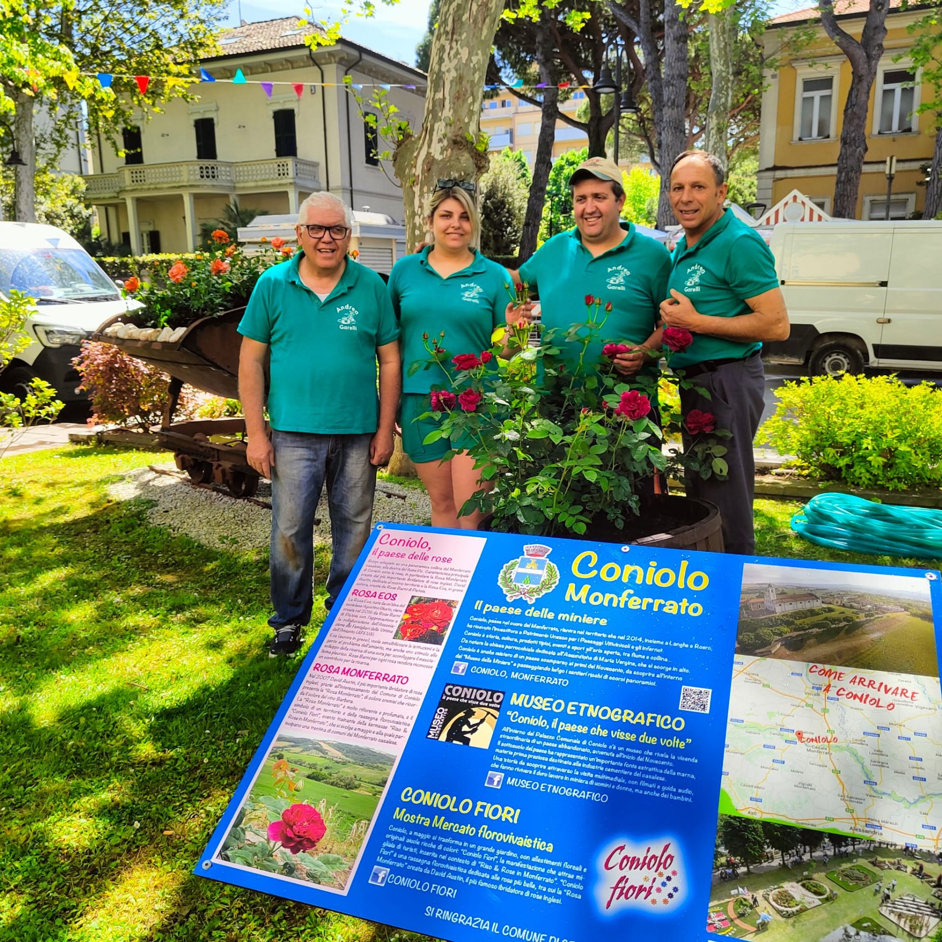 Uno spazio caratterizzato dalla presenza anche di un vagoncino minerario, trasformato in originale e grande vaso, e diverse rose che sono il fiore simbolo di Coniolo nonché dell’imminente “Coniolo Fiori”, evento più importante per il paese. Nell’aiuola sono state messe a dimora ben 112 rose, tra cui tre rose Monferrato, poi altre ad alberello, edibili e rose tappezzanti. All’interno dell’elegante, profumata nonché colorata area fiorita è stato sistemato anche un nuovo colorato pannello informativo dedicato a Coniolo che ne racconta le eccellenze e peculiarità.