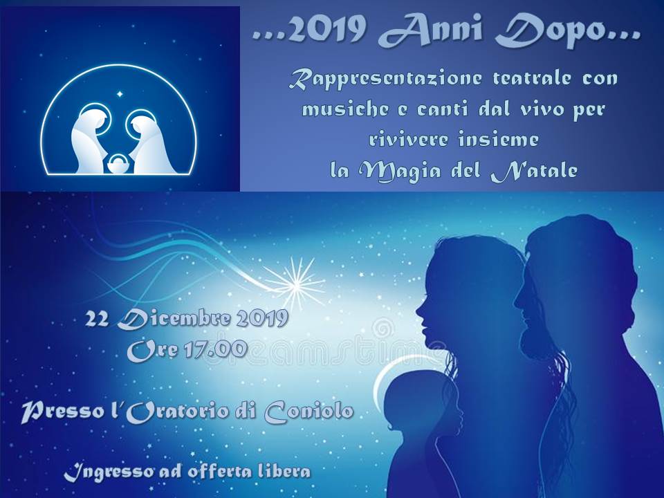 Rappresentazione teatrale con musiche e canti dal vivo per vivere insieme la Magia del Natale - 22 dicembre 2019 ore 17 presso l'Oratorio di Coniolo.